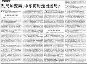 此外,西方大国的插手和干预,使得事态变得更为复杂,越来越激烈和扩大。这里特别要强调的是,动荡的主因和起因是内因。