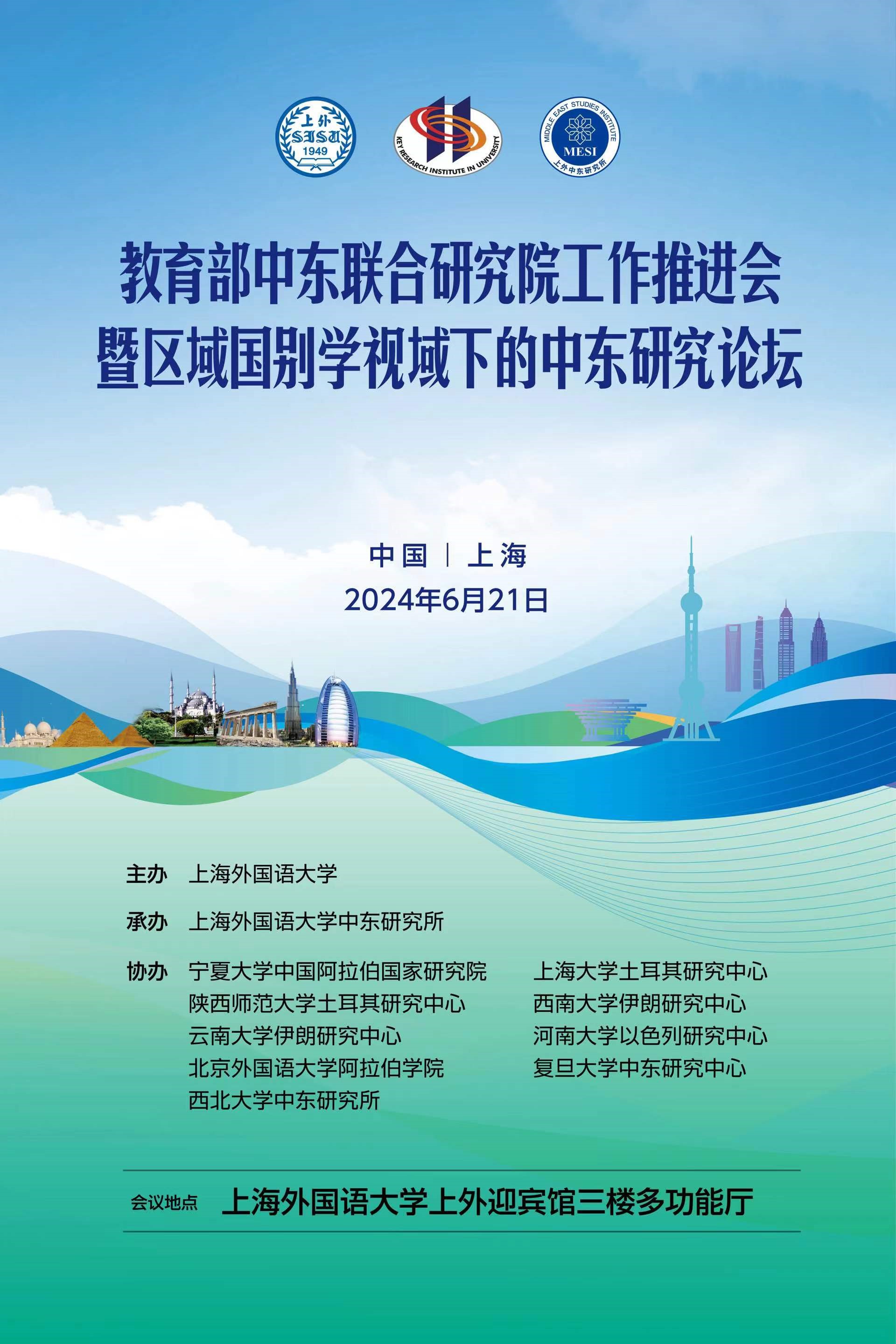 为有效推动教育部中东联合研究院建设工作,加强中东区域国别研究相关议题的深入研究,上海外国语大学中东研究所将于2024年6月21日(星期五)举办教育部中东联合研究院工作推进会暨区域国别学视域下的中东研究论坛。