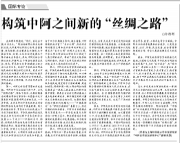 2012年5月25日,我所孙德刚副研究员在《光明日报》发表评论文章《构筑中阿之间新的“丝绸之路”》,全文如下: