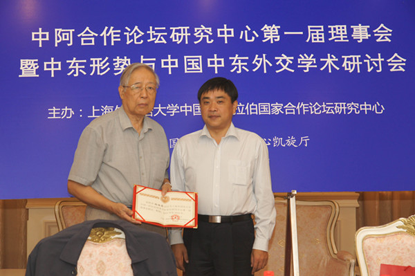 9月21日,中阿合作论坛研究中心理事会暨中东形势与中国中东外交学术研讨会在我校会议中心凯旋厅举行,外交部前副部长杨福昌大使、外交部西亚北非司王镝参赞以及来自全国的中东问题专家出席了会议,周承副校长到会致辞并为中阿合作论坛研究中心第一届理事会顾问和理事颁发聘书。