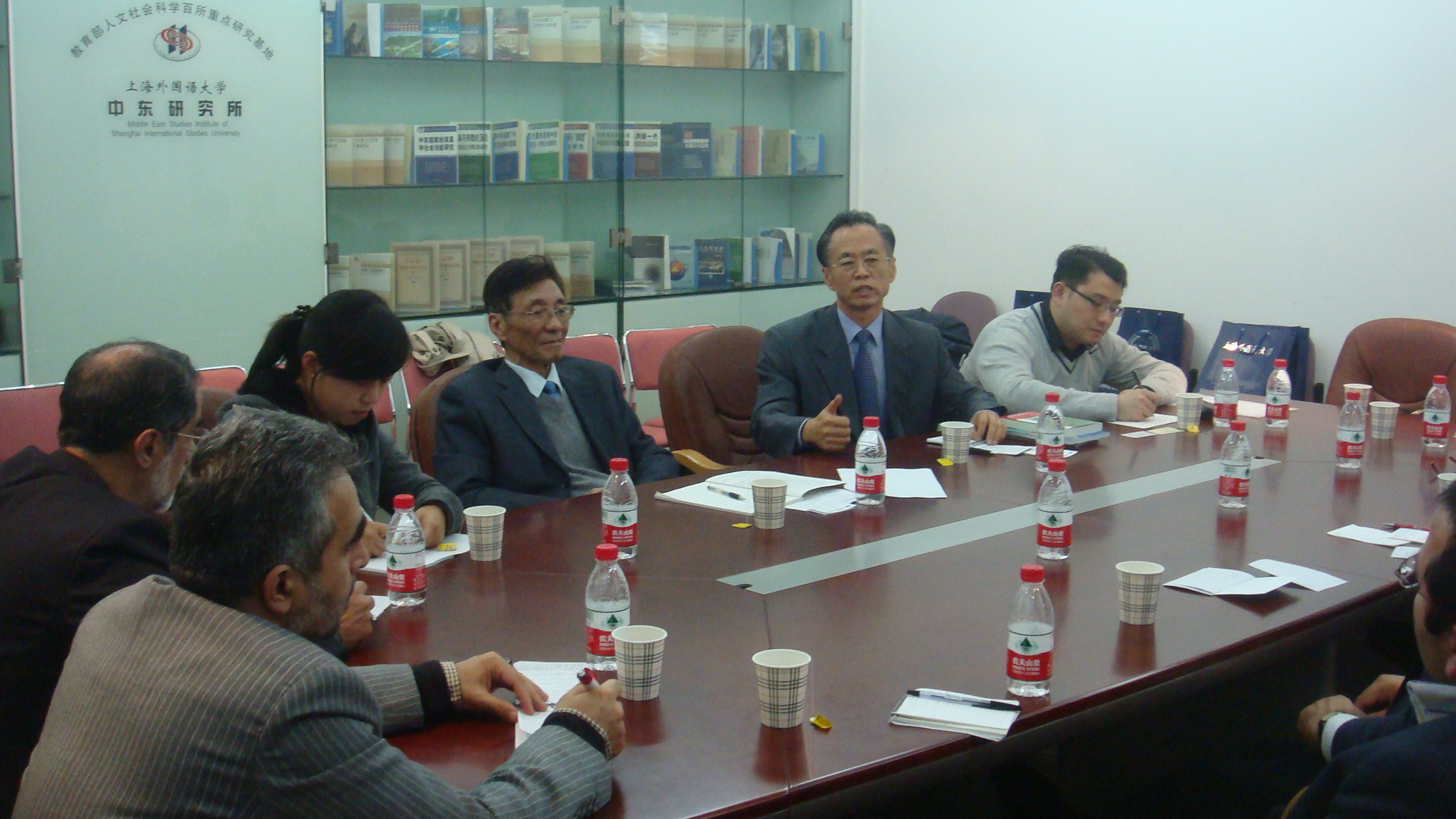 2012年11月21日,由伊朗政治与国际问题研究所(IPIS)所长穆斯塔法博士(Mostafa Dolatyar)率领的伊朗代表团一行4人访问我所。中东研究所名誉所长朱威烈教授和中国前驻黎巴嫩、伊朗大使刘振堂先生等与来宾就中东地区形势、伊朗核问题、南海问题及美国重返亚太战略等问题进行了讨论。双方参与会见活动的人员有伊朗驻沪总领馆总领事等3人,中国国际问题研究所助理研究员吴戈,上外东方语学院王振容讲师和中东研究所余泳博士、包澄章博士等。