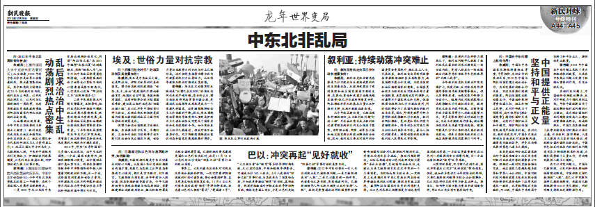 2012年12月28日,中东所两位教授接受《新民晚报》“新民环球年终特刊”采访,中东所名誉所长朱威烈教授就2012年中东地区局势发表评论,中东所所长刘中民教授就恐怖主义新动向等问题发表评论,全文如下: