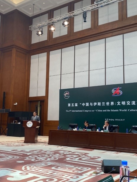 2024626-27日,第五届中国与伊斯兰世界:文明交流互鉴国际研讨会在北京召开。中国社会科学院秘书长赵志敏,中国政府中东问题特使、外交部原副部长翟隽出席开幕式并致辞。伊斯兰合作组织(OIC)所属机构伊斯兰历史、艺术与文化中心总干事马哈茂德·埃罗尔·基利奇(Mahmut Erol Kılıç)以视频方式致辞。中国社会科学院西亚非洲研究所副所长、中国非洲研究院副院长王林聪主持开幕式和主旨演讲。研讨会由中国社会科学院西亚非洲研究所(中国非洲研究院)主办。来自中国、土耳其、巴基斯坦、韩国等中外众多高校和研究机构的60多位专家学者参加会议。研讨会共设中国与伊斯兰世界的历史交往”“艺术、科学领域的交流和互鉴”“文学、哲学领域的交流和互鉴当代全球体系中的中国与伊斯兰世界4个分议题,与会专家学者围绕中国与伊斯兰世界的历史交往,双方在艺术、科学、文学、哲学领域的交流互鉴,当代全球体系中的中国与伊斯兰世界等议题进行了广泛而深入的研讨。