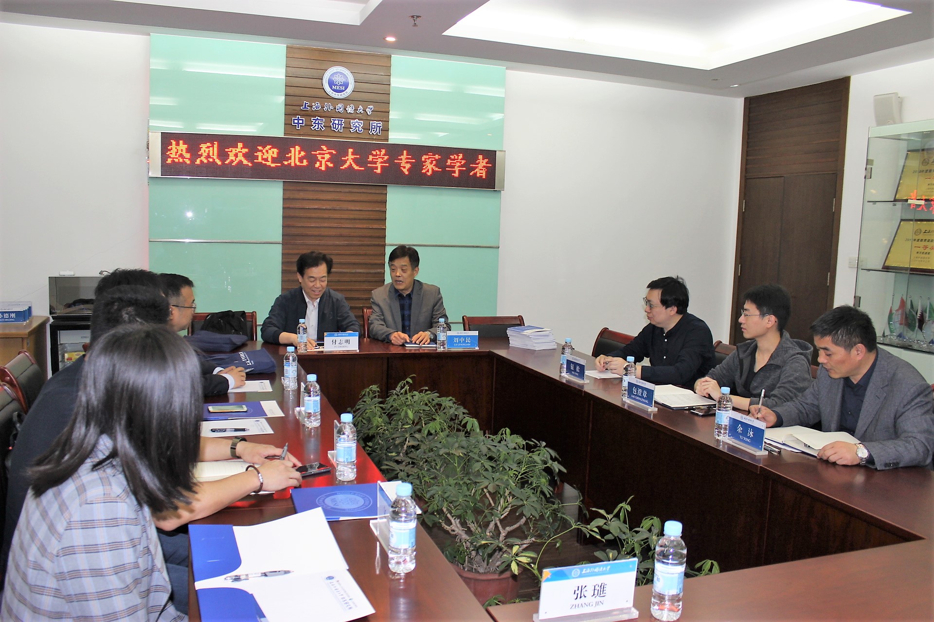 2019年5月10日,北京大学代表团一行访问中东研究所,代表团成员包括北京大学外国语学院副院长付志明教授、阿拉伯语系副主任吴冰冰副教授、阿拉伯语系李海鹏助理教授及博士研究生。中东研究所所长刘中民教授亲切接见了代表团一行,并同代表团成员举行座谈。
