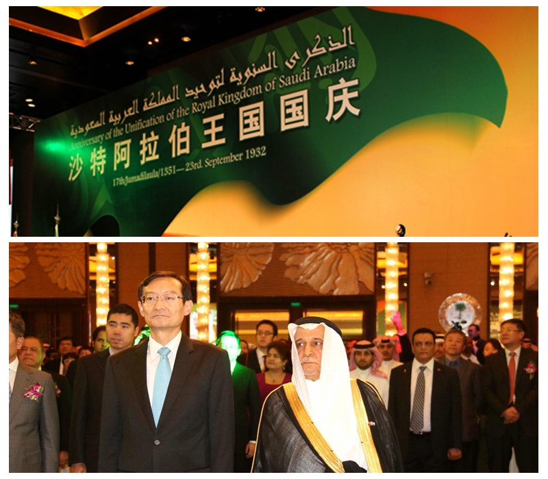 2014年9月23日晚,沙特阿拉伯王国驻华大使馆在北京国贸大酒店群贤宴会厅举行沙特王国82周年国庆招待会,中国外交部张明副部长出席活动并与沙特驻华大使叶海亚·宰德就双边关系及共同关心的问题交换了意见。应叶海亚阁下的邀请,上外中东研究所名誉所长朱威烈教授作为嘉宾出席招待会。