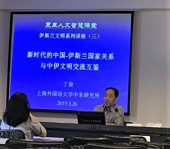 2019年5月25日至26日,上外中东研究所丁俊教授应邀在复旦大学“复旦人文智慧课堂”作了关于伊斯兰文明的系列学术讲座,讲座就伊斯兰文明的兴衰发展、历史成就、当代危机以及中华文明与伊斯兰文明的交往互鉴等议题分别作了专题讲解。本系列讲座为该智慧课堂“世界文明史”课程的一部分,旨在“探寻文明起源,回溯全球格局,系统梳理全球各文明之历史”。据悉,“复旦人文智慧课堂”开办于2005年,意在打造高品质学习交流平台,涵养人文,砥砺智慧,促进中外文明交流互鉴,并为决策未来提供新思维和新视野,该课堂已发展成为沪上乃至全国具有广泛社会影响的人文教育品牌。