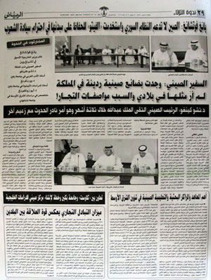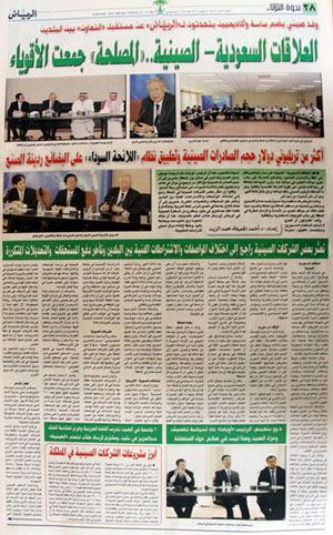 文章以《沙中关系与共同利益》为题,生动报道座谈会召开情况,详细介绍双方就叙利亚、中阿、中沙关系及中沙经贸、教育、旅游合作等问题的坦诚交流。报道覆盖面广,内容详实,不失为沙特人民了解中国的一扇窗口。文章原汁原味大幅引用代表团团长、原外交部副部长杨福昌大使及其他成员讲话,充分展示出中国专家学者知识渊博、熟谙国际事务、说理精辟独到,令人印象深刻。报道以彩色版面为主,图文并茂,标题醒目,视觉冲击力强。