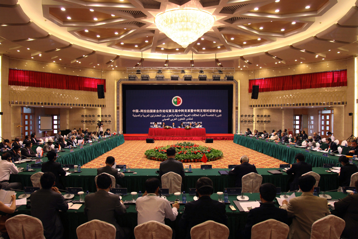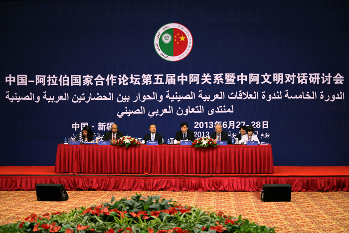 2013年6月27日至28日,中国—阿拉伯国家合作论坛“第五届中阿关系暨中阿文明对话研讨会”在新疆乌鲁木齐举行。新疆维吾尔自治区主席努尔•白克力会见与会中外方代表,外交部副部长翟隽、新疆维吾尔自治区副主席库热西•买合苏提出席会议开幕式并分别致辞,中方代表团团长、外交部前副部长杨福昌大使和阿方代表团团长、埃及驻华大使艾哈迈德•里兹克以及阿盟代表团团长、阿盟文化和文明对话司司长萨米亚•比巴尔斯共同主持会议。来自外交部、文化部、国务院新闻办公室、全国对外友协、国内知名学术研究机构、高校以及阿拉伯各国和阿拉伯国家联盟的近百名代表和专家学者出席。