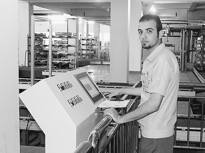 中埃苏伊士经贸合作区内,巨石集团埃及公司年产8万吨玻璃纤维。图为生产线上的埃及技术员。(记者 刘水明摄)