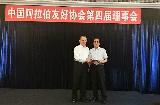 会上,艾力更·依明巴海会长向第四届理事会单位理事和个人理事会颁发了聘书。会后,中阿友协举行了招待会,阿拉伯国家驻华使节及全体与会人员出席了招待会。上外中东研究所受聘担任中国阿拉伯友好协会第四届理事会单位理事,中东研究所丁俊教授受单位委派参加本次会议并代表单位接受了聘书。