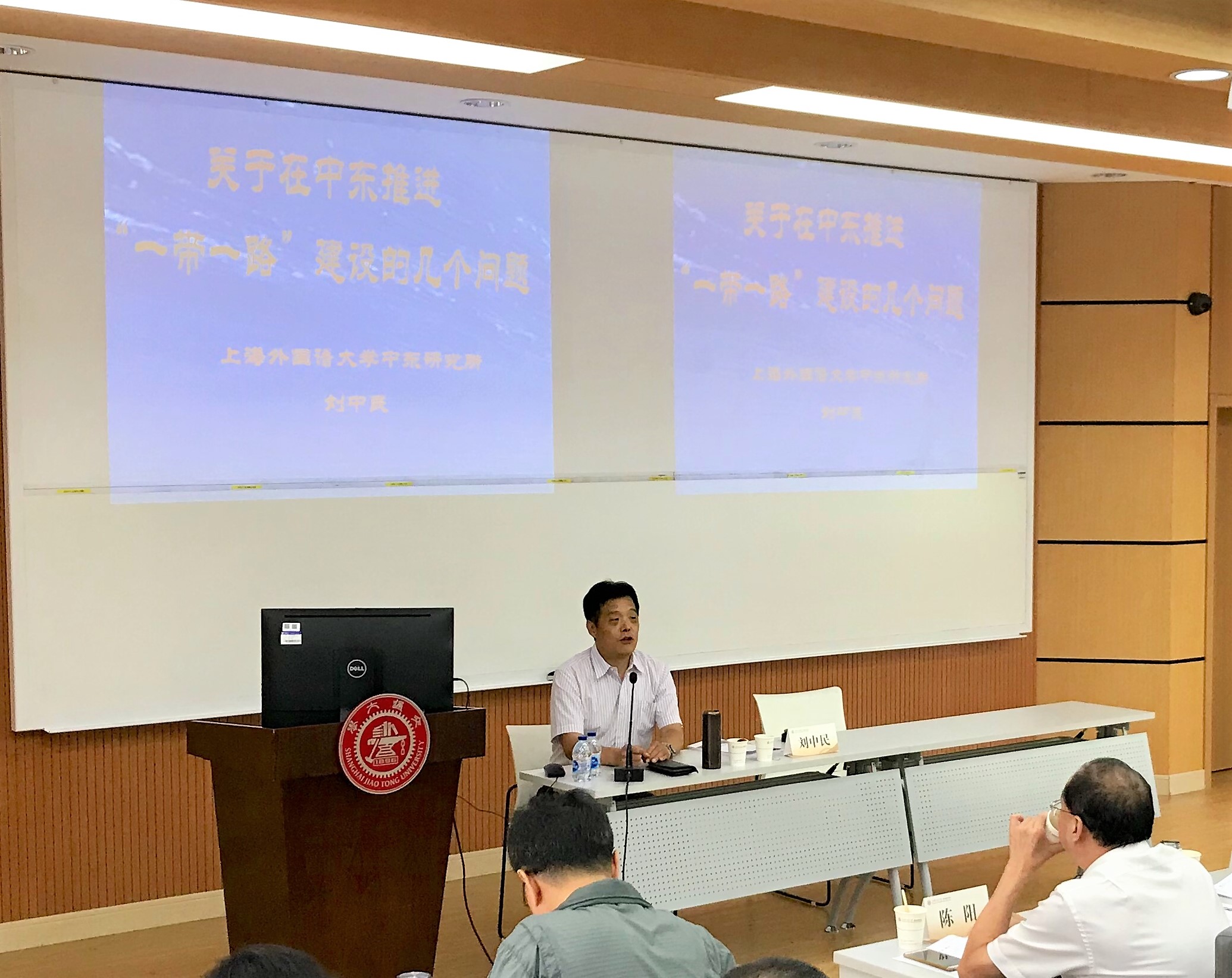 2019年8月31日,上外中东研究所所长刘中民教授应邀为上海交通大学第四期“一带一路”研修班作学术讲座,讲座的题目为“关于在中东推进‘一带一路’建设的几个问题”。来自四川、重庆、新疆、内蒙古、黑龙江等省市区的地方政府部门干部50余人听取了讲座。