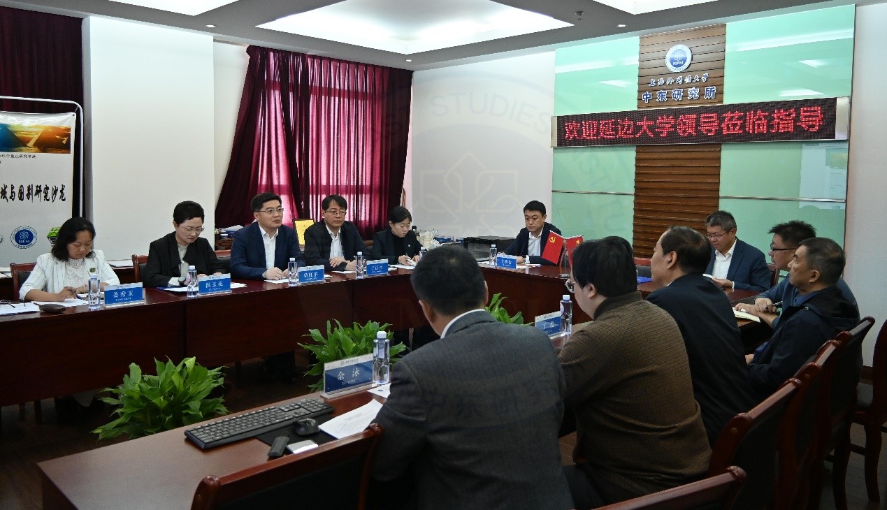 2024年10月30日,延边大学党委副书记、校长蔡红星一行来访上海外国语大学中东研究所调研,与我所研究人员开展工作交流与学术研讨。上海外国语大学校长办公室主任蒋昕宇、上外中东研究所所长丁俊教授、副所长余泳副研究员及汪波、钮松、丁隆等研究人员出席交流研讨活动。