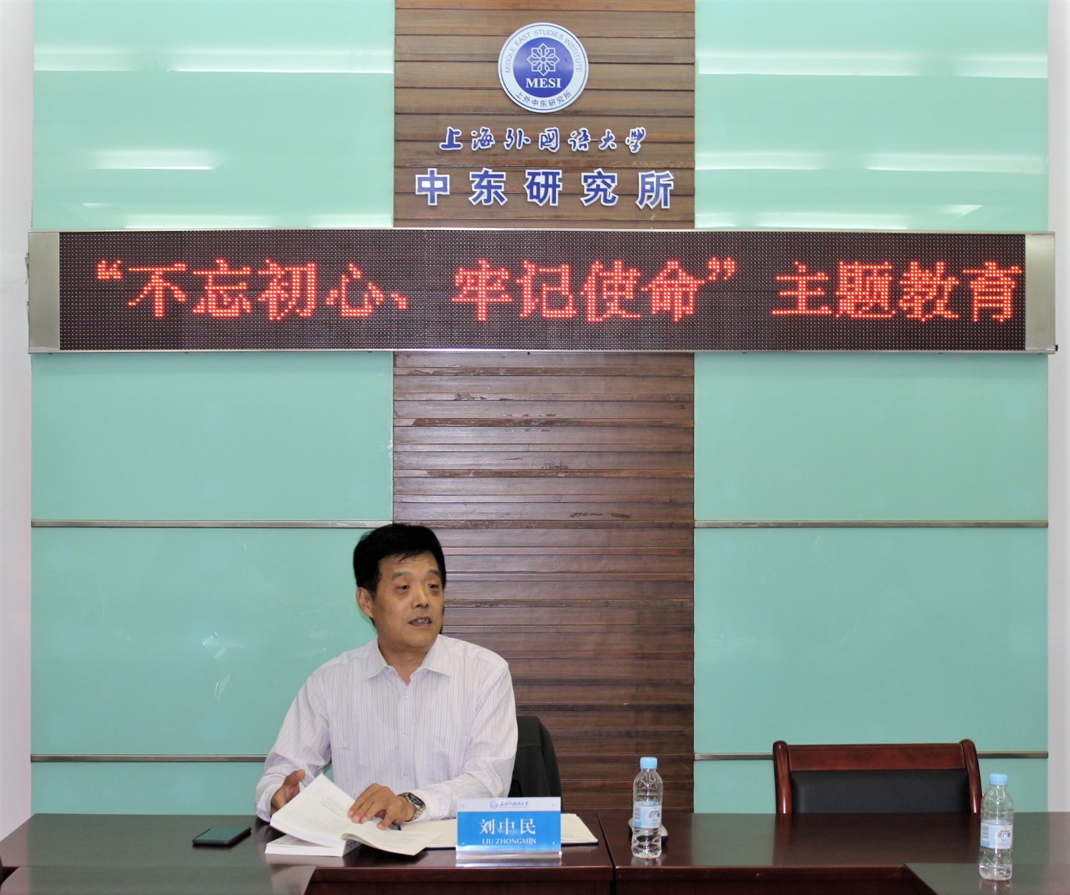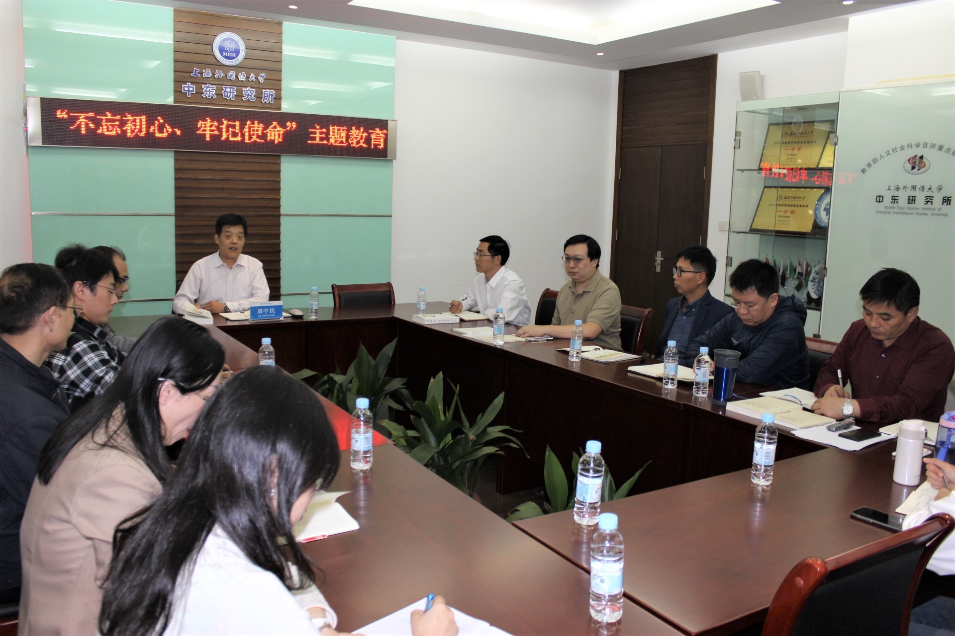 2019年10月18日,上外中东研究所举办“不忘初心、牢记使命”主题教育学习交流大会。会议由钮松研究员主持,中东研究所全体党员和行政人员出席会议。