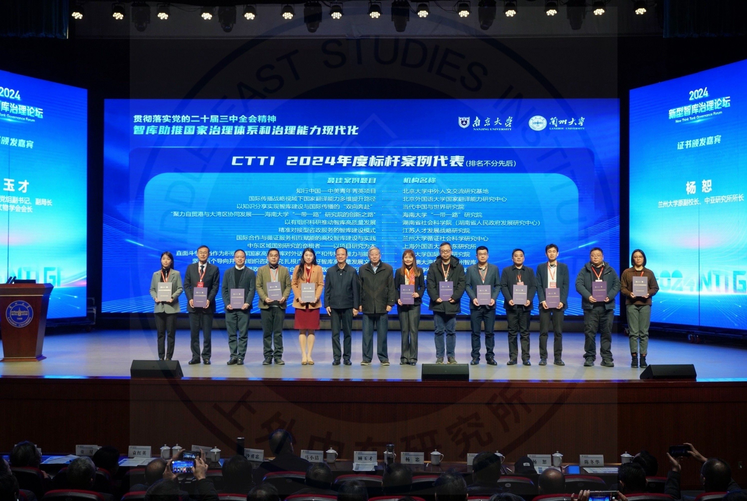 2024年11月30日,“2024新型智库治理论坛”在兰州大学城关校区召开。本次论坛由南京大学和兰州大学共同主办,主题为“贯彻落实党的二十届三中全会精神,智库助推国家治理体系和治理能力现代化”。兰州大学党委书记马小洁等在大会开幕式上致辞,中国科学院院士黄建平等做主旨报告。大会上午的议程还包括兰州大学成果发布,2024年CTTI增补来源智库名单发布、最佳案例发布与优秀成果发布,下午召开了六场平行论坛。上外中东研究所副所长余泳副研究员、范鸿达教授应邀参加本次论坛,余泳副所长作为标杆案例智库代表之一上台领取证书,范鸿达教授对平行论坛六“区域国别智库建设新动力与内涵式发展”下半场的重点发言进行了点评。