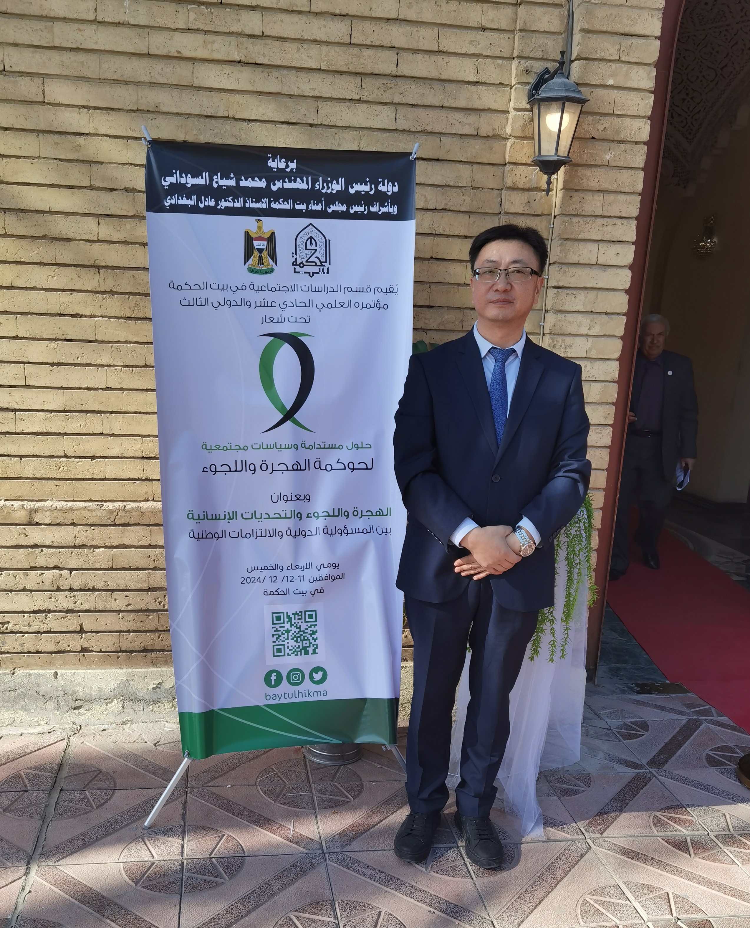 2024年12月11-12日,上外中东研究所丁隆教授应邀赴伊拉克巴格达参加“国际移民和难民治理”国际学术会议。会议由伊拉克官方智库—智慧宫主办,来自阿拉伯国家和世界其他国家和地区的200多名代表参加会议。伊拉克外交部、内政部官员,智慧宫理事会主席阿迪勒等在开幕式上致辞。在主旨演讲和分论坛上,与会学者围绕国际移民和难民、预防和治理中东难民潮等议题展开研讨。