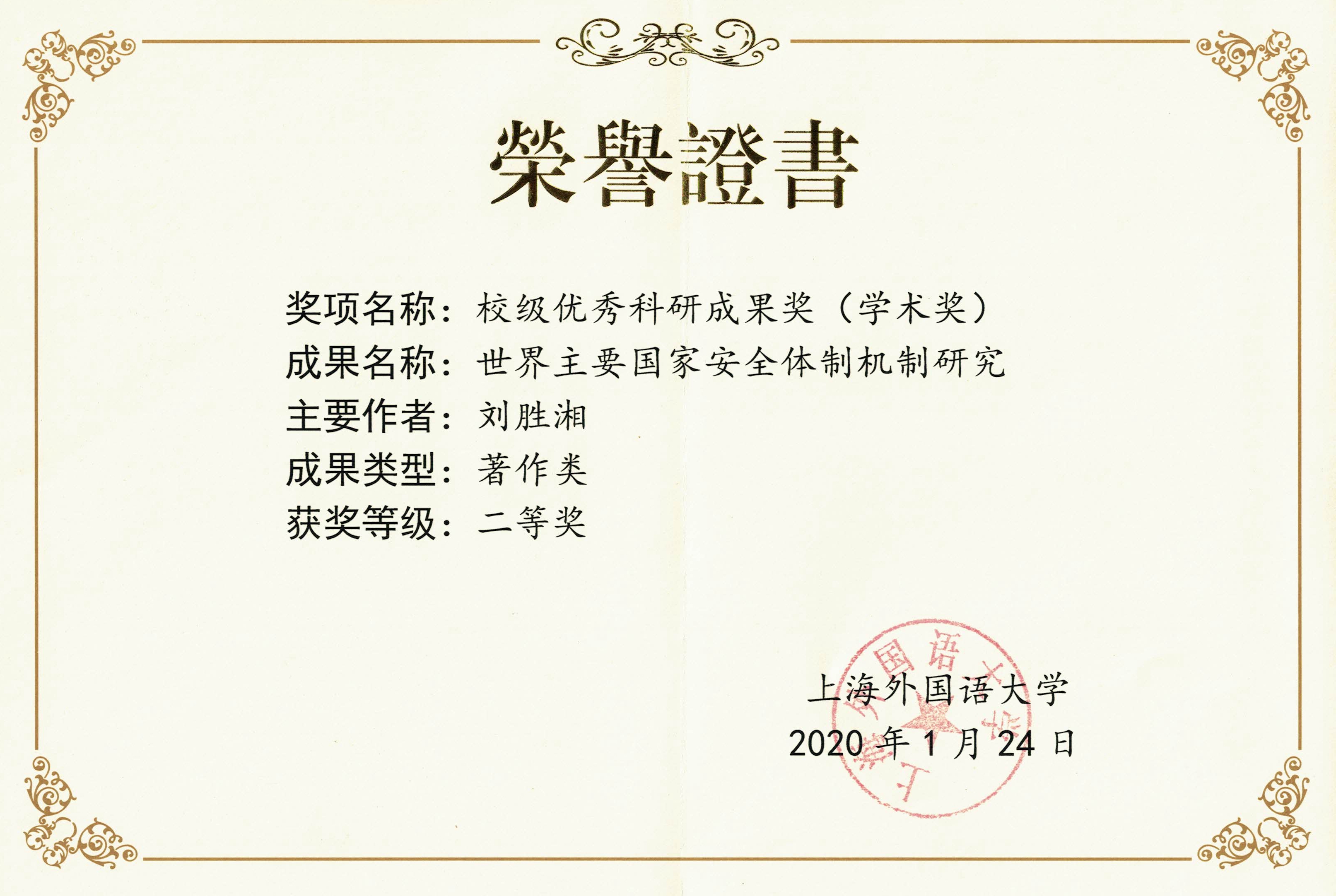 根据《上海外国语大学优秀科研成果奖评奖暂行办法》,经院系初审、专家复审、校教育奖励基金评审委员会终审和获奖成果公示,中东研究所刘中民教授撰写的《伊斯兰哈里发制度:从传统理想到现实困境》获2019年度优秀科研成果学术奖(论文类)一等奖,刘胜湘教授撰写的《世界主要国家安全体制机制研究》获2019年度优秀科研成果学术奖(著作类)二等奖,章远研究员撰写的《进攻性宗教冲突与防御性宗教冲突:基于地缘政治的分析》获2019年度优秀科研成果学术奖(论文类)三等奖。