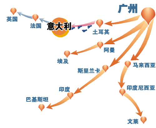 在哥伦布发现新大陆后,威尼斯经济受到影响,开始走下坡路,海上雄风不再。不过,早在16世纪末,随着意大利耶稣会士的东来,中意两国开始了历史上第一次实质性的接触和交流。中国古代典籍和制度等知识不断地被介绍到意大利,中国随之也成了意大利在17世纪效仿的对象。同时,随着新航路的开辟,中国的器物也被大量地运往西方,精美的器物加上“完美的道德哲学”,激起了18世纪欧洲的“中国热”。