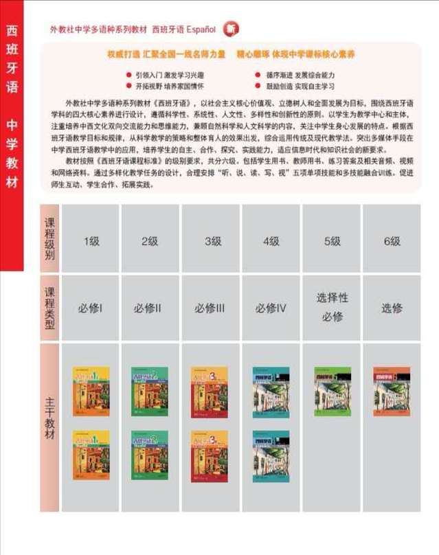 为适应新形势下中学西班牙语的教学要求,上海外语教育出版社组织参与编写《西班牙语课程标准》和《西班牙语课程标准(2017版)解读》的专家及国内大学和中学的骨干力量,共同编写了本套中学多语种系列教材《西班牙语》。