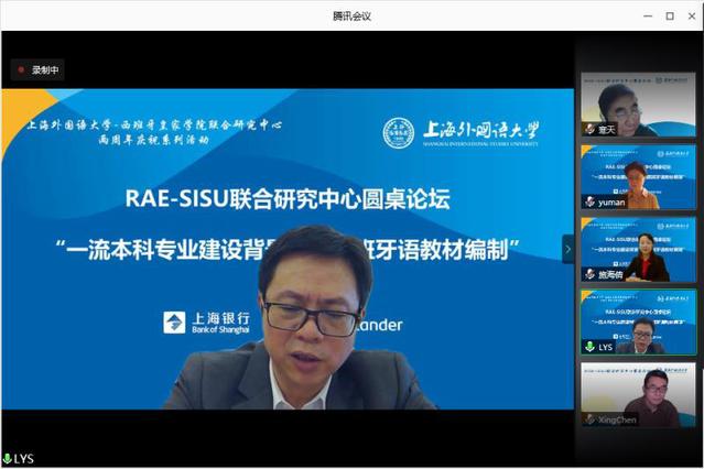 922日上午,上海外国语大学-西班牙皇家学院联合研究中心成功举办一流本科专业建设背景下的西班牙语教材编制圆桌论坛,本次论坛是联合研究中心成立两周年系列庆祝活动之一。上海外国语大学校长李岩松、北京外国语大学教授郑书九、上海银行副行长黄涛、桑坦德银行亚太区企业及投资银行部、战略合作部总监钟国强、上海外语教育出版社社长孙玉、上海外国语大学西方语系系主任于漫、党总支书记施海倩、全国五所国家级一流本科西班牙语专业负责人以及上海外国语大学西班牙语专业全体教师、研究生参加了此次活动。