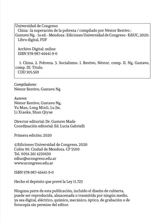 El libro (que se puede leer y descargar en ISSUU y será impreso por Ediciones de la Universidad de Congreso en el verano de 2021) cubre una temática esencial que prácticamente carece de bibliografía específica. Y se publica pocos días después de que el gobierno chino, el 23 de noviembre pasado, anunciara oficialmente el fin de la indigencia, una meta buscada (y cumplida) para el centenario de la fundación del Partido Comunista del país asiático, que se cumple en 2021.