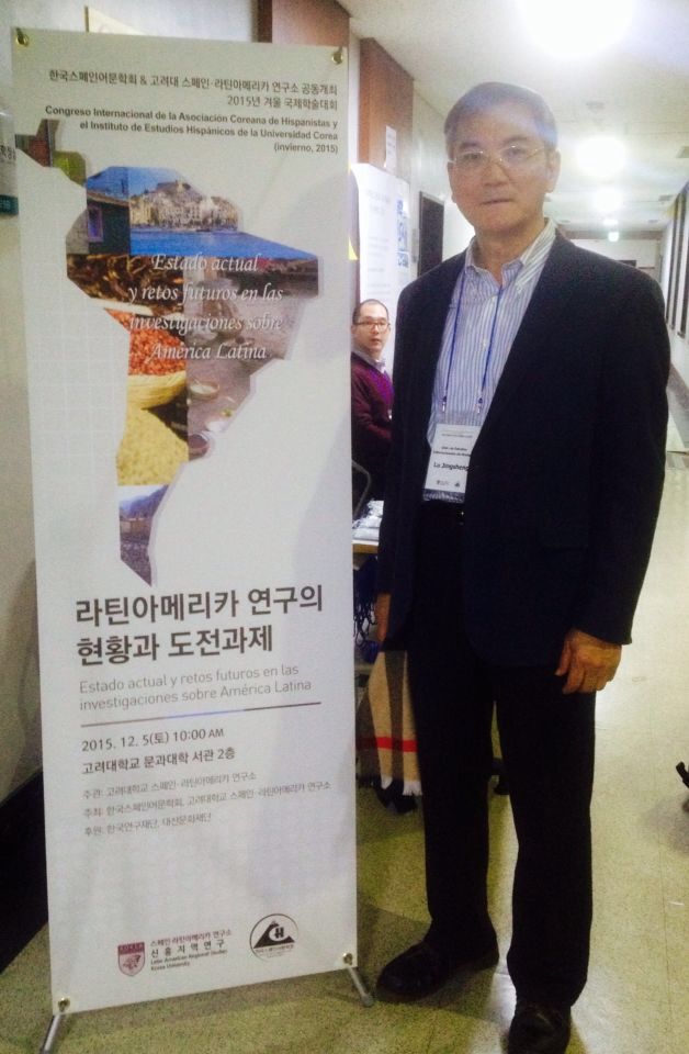 应韩国西班牙语学者协会邀请,我校西班牙语教授、教育部高校外语教学指导委员会西班牙语分委员会主任陆经生参加了于2015年12月5日由韩国高丽大学与韩国西班牙语学者协会联合举办的题为“Estado actual y retos futuros en las investigaciones sobre América Latina”(拉丁美洲研究现状与未来挑战)的国际研讨会,作“La localización en el contexto de la internacionaliación: estrategías para ELE en China”(国际化语境下的本土化:中国西语教学策略)报告。参加会议的有国立首尔大学、高丽大学、韩国外国语大学等韩国知名高校西班牙语语言文化及拉美研究学者,以及来自古巴哈瓦那大学、日本上智大学、中国台湾谈江大学、西班牙塞万提斯学院的专家学者。
