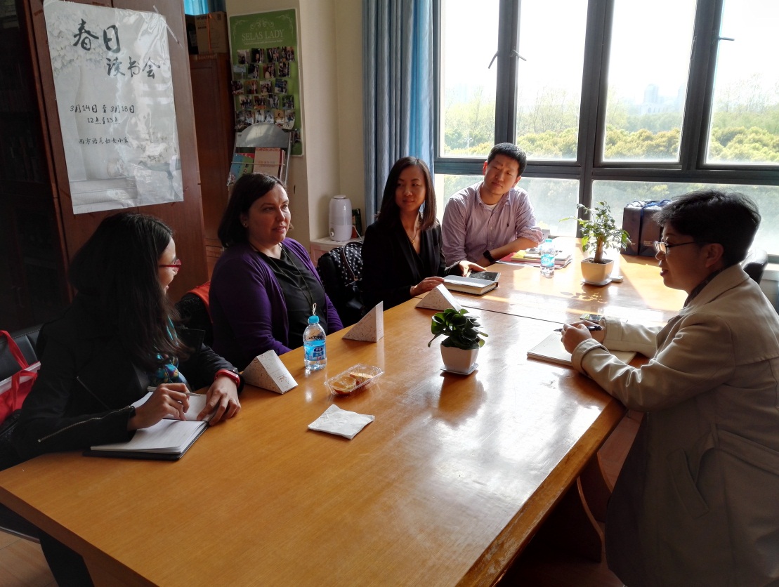 411日,西班牙安东尼奥··内布里哈大学国际交流处亚太项目负责人Tamara Rodil Cuadrado女士,亚洲区代表、我校校友方静怡及中国办事处代表苏惠清来访我校西方语系。我系系主任于漫、副系主任杨明参与接待。