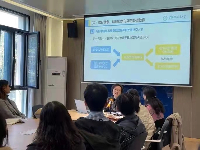 党课上,张校长着重从“中国共产党领导下的外语教育发展历程、学习外语教育发展史的思考与感悟、以史为鉴,指导人才培养工作实践”等三个层面展开生动讲述。按照建党初期、抗战时期、改革开放前、改革开放后、新时代这五个历史脉络,帮助大家梳理了党的发展历程和外语教育的发展历程之间的紧密联系。从“外国语学社”、“上海大学”到外语学校学堂,从敌军工作训练队、俄文讲习班到延安外国语学校,从赴朝语文工作队到马恩列斯著作编译局,从华东人民革命大学附设上海俄文学校到外语教育转型开启新篇章,一个个鲜活的历史故事跃然眼前,上外人“一生心译”的动人故事深刻反映出上外的发展与国家的发展始终紧密相连,在历史发展的各个阶段,上外始终服务于国家发展的需求,不断为党育人、为国育才。