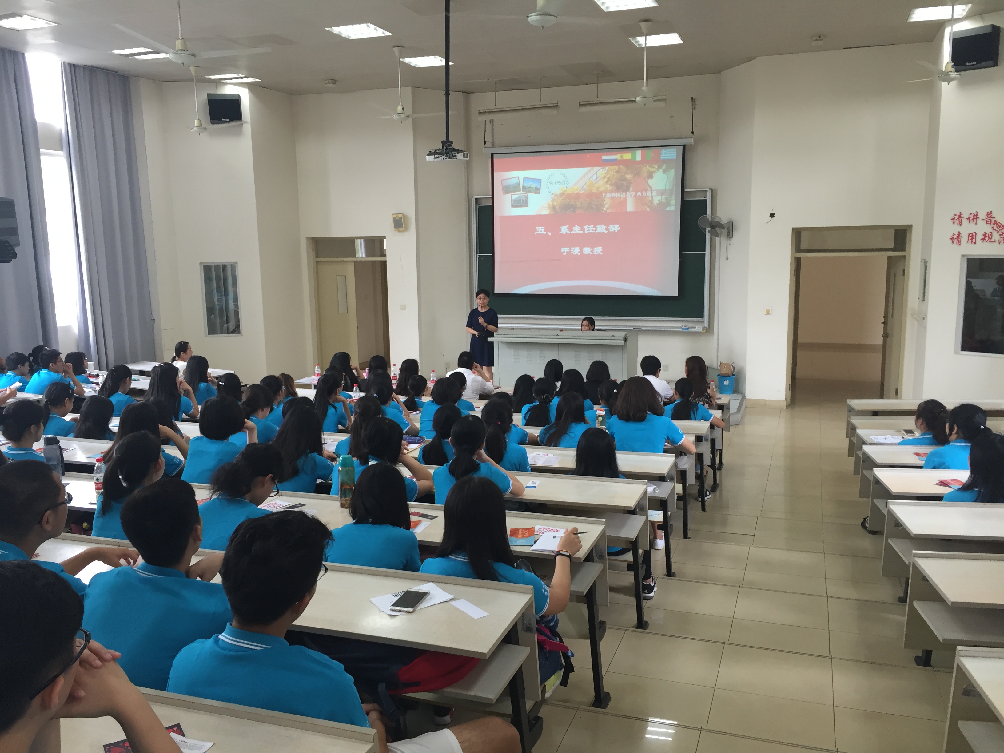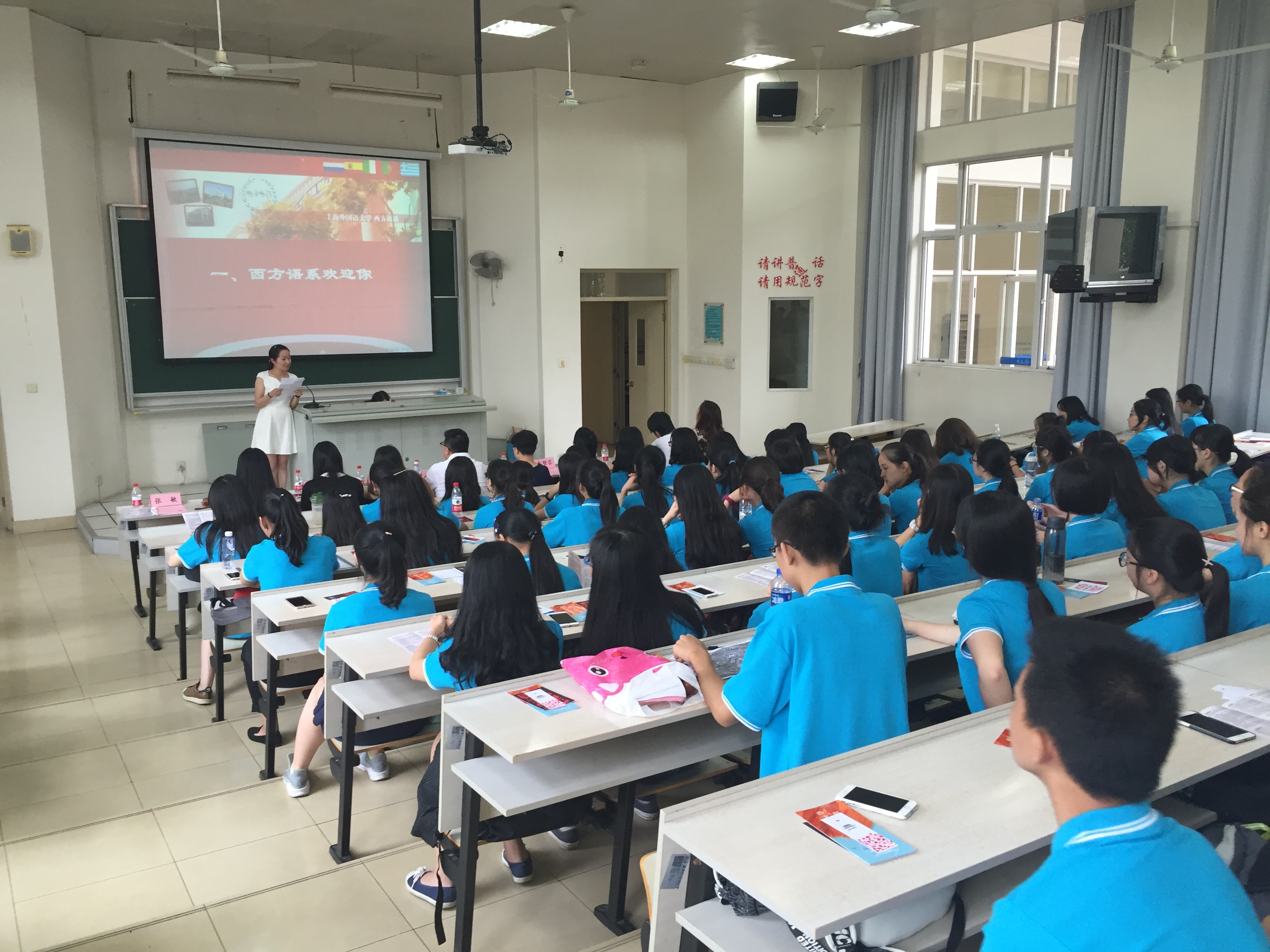 典礼在国歌声中拉开序幕,张敏老师代表西方语系全体师生对新同学的到来表示了热烈欢迎。