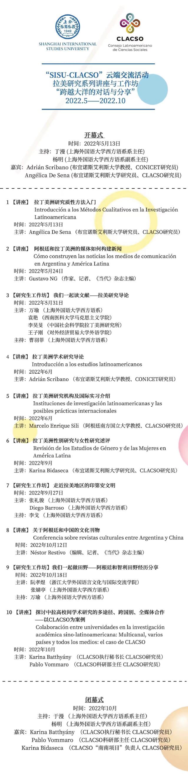 【学术活动通知】SISU-CLACSO云端交流活动 拉美研究系列讲座与工作坊 “跨越大洋的对话与分享”