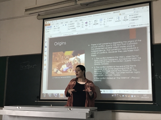 Luna博士围绕“哥伦比亚和平进程”做主旨演讲。首先总结了哥伦比亚长达数十年内乱的四个主要原因,参与其中的游击队、自卫军和政府三方的角色,内乱的三个主要阶段和1982年以来的和平进程。Luna指出,在内乱中受伤、死亡、无家可归的平民是真正的受害者。通过哥伦比亚各方以及现总统桑托斯多年的努力,经历了两次公投和修改之后,于2016年11月24日和哥伦比亚革命武装力量签署和平协议。Luna表示,这是哥伦比亚人民共同的心愿,但这只是和平进程的第一步,社会上有很多担忧和很多不确定因素,还有其他的武装力量、犯罪集团威胁着国家的稳定和安全。最后,大家围绕“18年哥伦比亚总统大选结果对和平进程的影响”、“美国在和平进程中的作用”展开了进一步讨论。