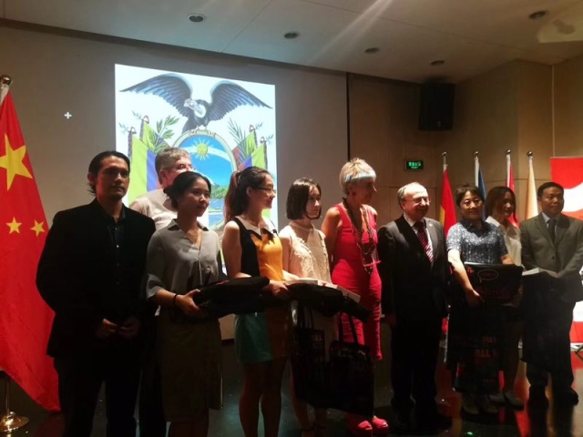 823日,“2017全国高校西班牙语写作比赛”在北京塞万提斯学院举行颁奖典礼,上海外国语大学西班牙语语言文学专业学生张婧亭和程雪佳分获第一名和第五名。该比赛由厄瓜多尔驻中华人民共和国大使馆主办,以2016年习近平主席对厄瓜多尔进行的国事访问为主题思想,参赛者分别来自全国六十多所高校的西班牙语专业,共计评选出五名优胜者。