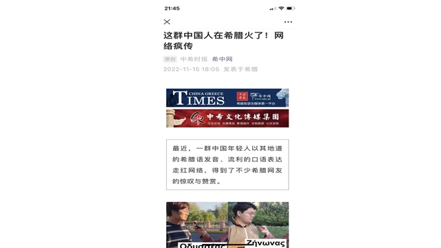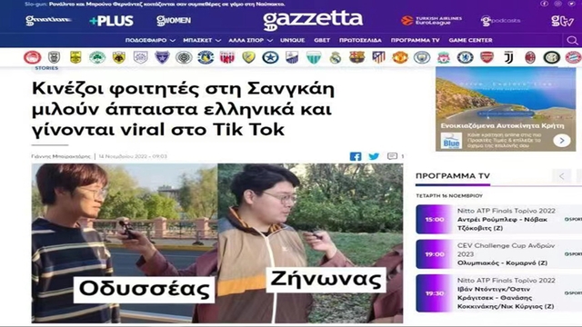 该街采视频在希腊抖音平台发布后,短短几日内播放量达到110万,点赞超过11万,评论近2000,转发超过4000。随后有超过30家希腊网络媒体对该视频进行了报道或转载,一时之间,中国学生说流利的希腊语成为全网讨论的热点。11月15日,该新闻荣登opentv当日最佳新闻。网友们看过视频后纷纷表示希腊语是世界上最难学的语言之一,但是“他们说得比希腊人还好”,“他们说话就像希腊人一样”,甚至有网友质疑“他们真的不是希腊人吗”?