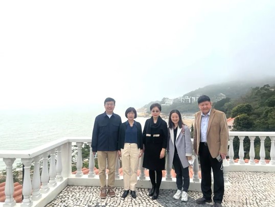 国际学院张洪明院长(右一)、王婷助理院长(右二)与于漫教授(左三)及