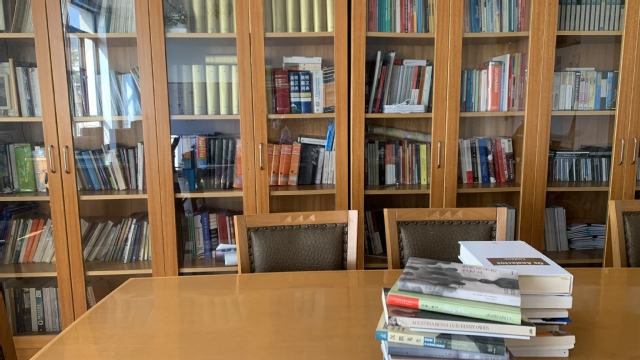 比起一般的教室,葡语中心更像是一间迷你图书馆与研讨室。这里两侧伫立着大型木质书架,书架上贝联珠贯地陈列着葡语著作;尽管不可比肩于大型图书馆或是文献室,但足以令每一位有志于学的葡语爱好者感到欣喜与满足。除了收藏的文献之外,葡语中心配有两张长两米、宽一米的会议长桌和一张可使用电脑并操作投影仪的大型办公套桌。课上或课后,常常是师生共一桌而坐,畅所欲言,不知时间流逝几何。