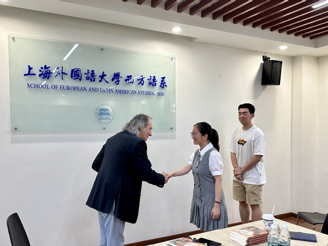 5月31日上午,希腊知名作家、诗人Tassos Lampropoulos应邀到访上外希腊语专业,与希腊语师生进行了以“成为你内心深处的自己——一个优秀的人”为主题的对谈活动。活动由希腊研究中心主任胡晶晶副教授主持。