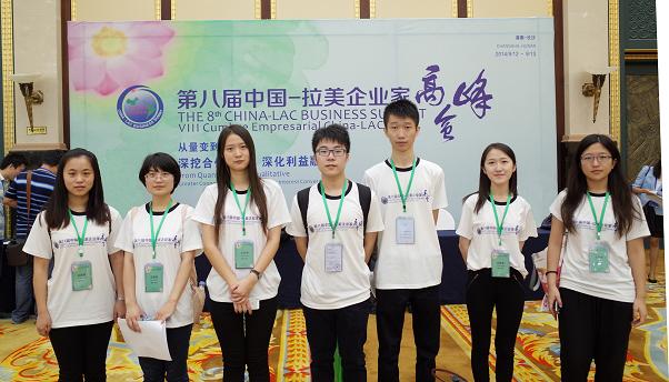 2014912日至913日,第八届中国—拉美企业家高峰会在湖南长沙举行,全国政协副主席刘晓峰、湖南省委书记徐守盛等出席开幕式并发表演讲,来自近三十个拉美和加勒比国家及中国二十多个省市的八百余名企业家齐聚长沙。我校西方语系派出8名西班牙语志愿者进行翻译工作,陪同拉丁美洲多国部长、大使及参赞等贵宾与会,并积极投身企业洽谈会协助中拉企业沟通,圆满完成任务。