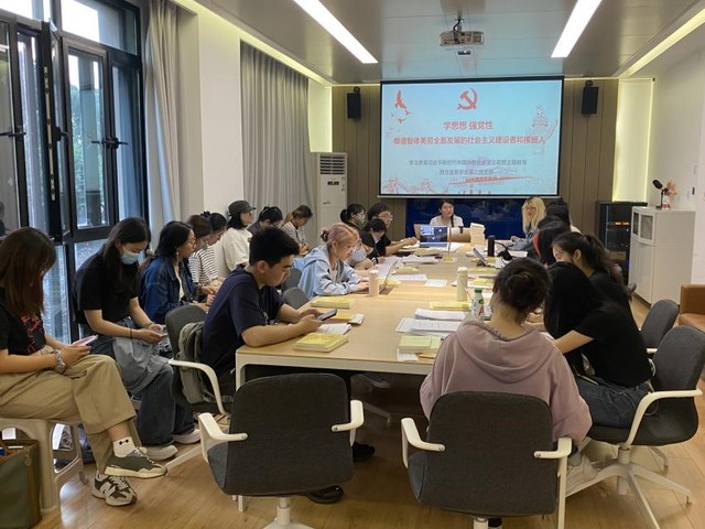 68日晚,西方语系学生第二党支部以“学思想,强党性——做德智体美劳全面发展的社会主义建设者和接班人”为主题,开展主题教育理论学习主题党日活动。党支部书记彭小婉领学《习近平著作选读》第二卷,支部党员重点研读了“培养德智体美劳全面发展的社会主义建设者和接班人”部分原文,并结合自身实际进行交流讨论。支部党员一致认为,要珍惜在校的学习经历,并且勇于在实践中提升党性修养,从坚定理想信念、厚植爱国主义情怀、加强品德修养、增长知识见识、培养奋斗精神、增强综合素质等六个方面不断完善自我,早日成为合格的社会主义建设者和接班人。