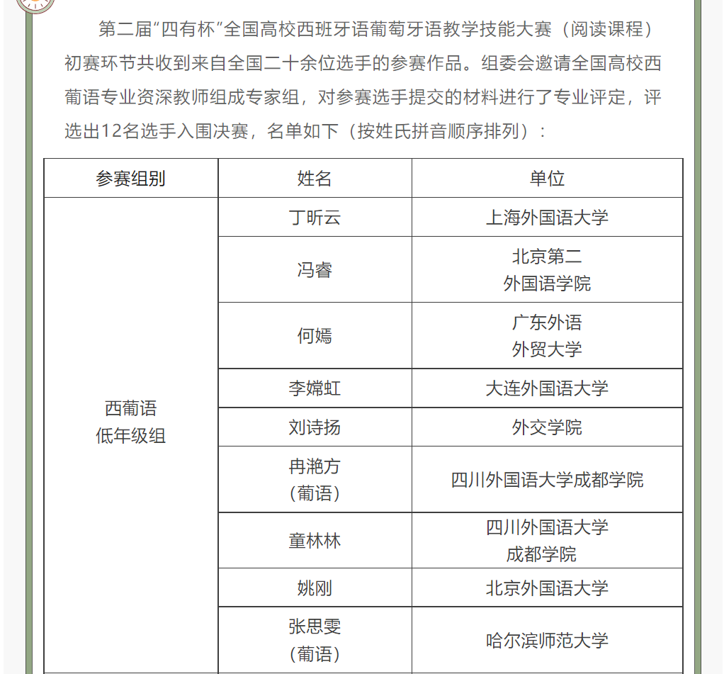 第二届“四有杯”全国高校西葡语教学技能大赛初赛结果(来源:【外研社西班牙语】公众号)