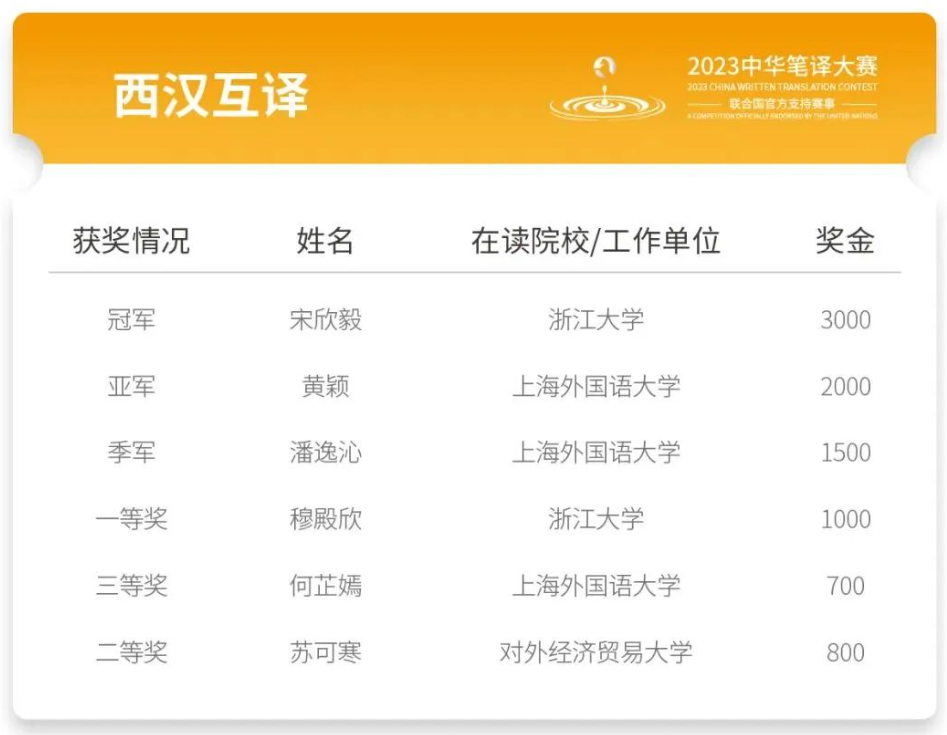 2023年中华笔译大赛总决赛获奖名单(来源:【策马翻译】公众号)