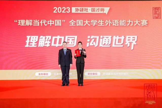 在上外本科的四年,陪伴她从教学楼到食堂路上的,总是耳机里循环播放的西班牙语,随着专业课听写本上一个个红圈圈渐渐消失,潘逸沁也找到了西班牙语学习的方法。本校保研后,潘逸沁在2023外研社·国才杯:理解当代中国全国大学生外语能力大赛中,成为该赛事设置西班牙组后的首位冠军。相比于兴奋或激动,潘逸沁更多的是欣慰,回想起学习西班牙的四年,她常常感慨:来到上外学习西班牙语是我做出的最好选择,它打开了我的视野,向我展现了不一样的文化,让我能和世界各地的人沟通交流。
