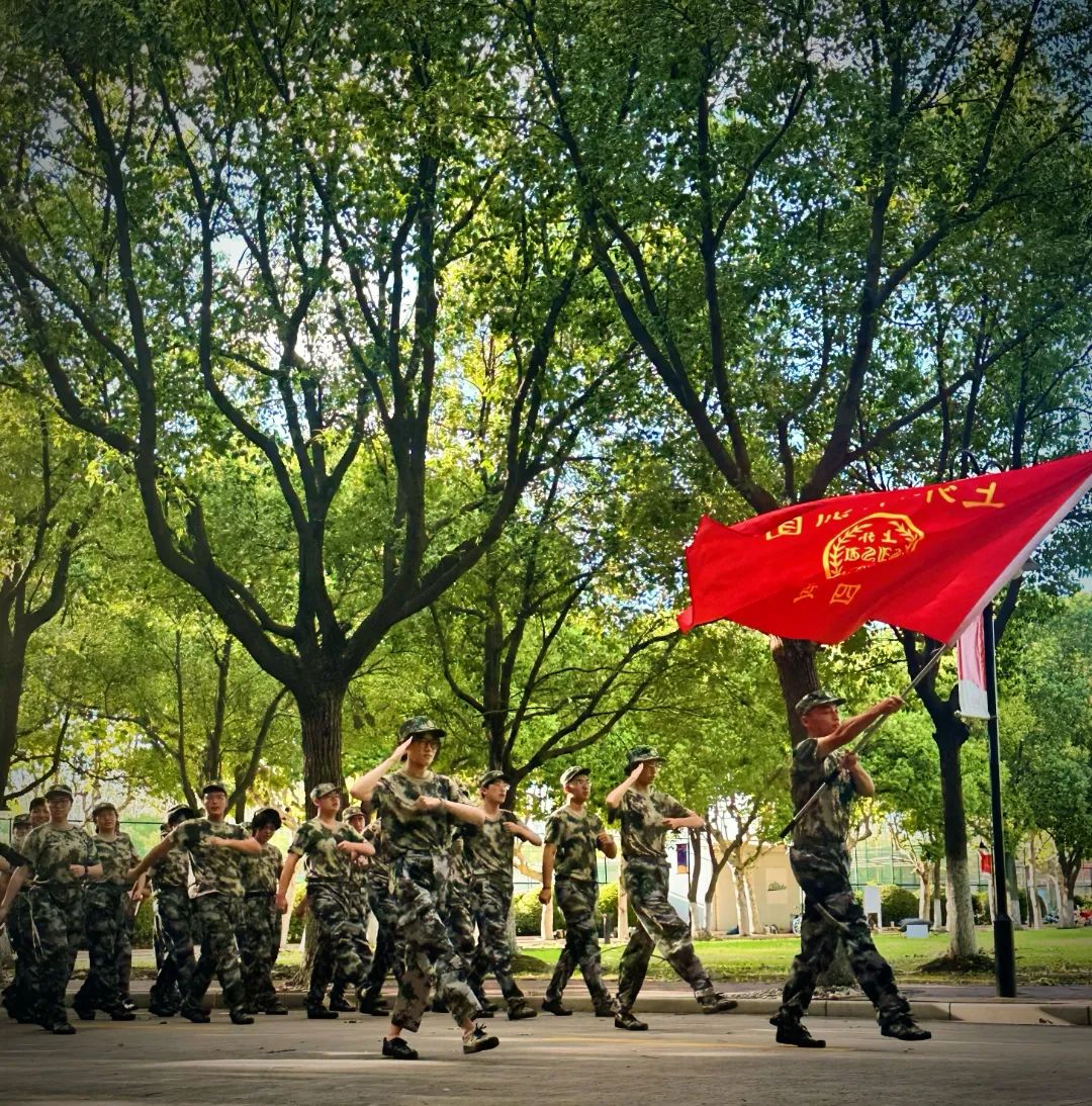 “手要贴紧裤缝!”、“腿要绷直!”、“靠脚声要整齐!”——训练场地时时回荡着教官的指导,似乎每一次练习都有不完美的地方。但勤能补拙,经过无数次的分排小组练习、方阵合练,刚刚认识的同学们也逐渐有了默契,军姿、转向、踢正步,整齐度都明显提高,队伍的纪律性也越来越好,同学们内心里也燃起作为团队一员的自豪感和对集体的责任感。
