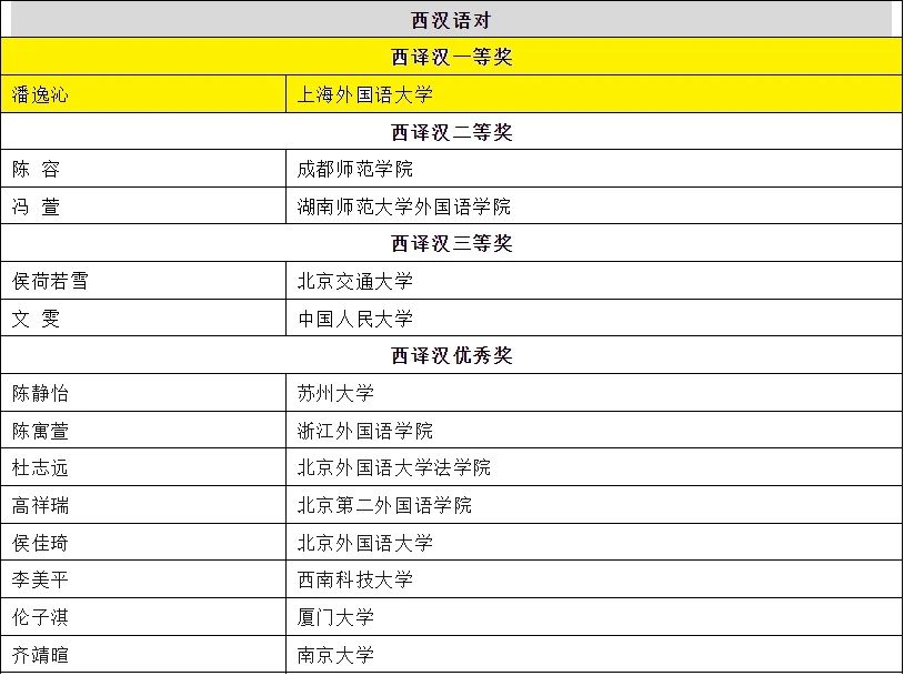 20241016日,2024年第三十六届韩素音国际翻译大赛奖项揭晓,我系西班牙语专业学子荣获佳绩。2023级研究生潘逸沁获得西译汉一等奖,2022级研究生刘蕊获得汉译西二等奖。