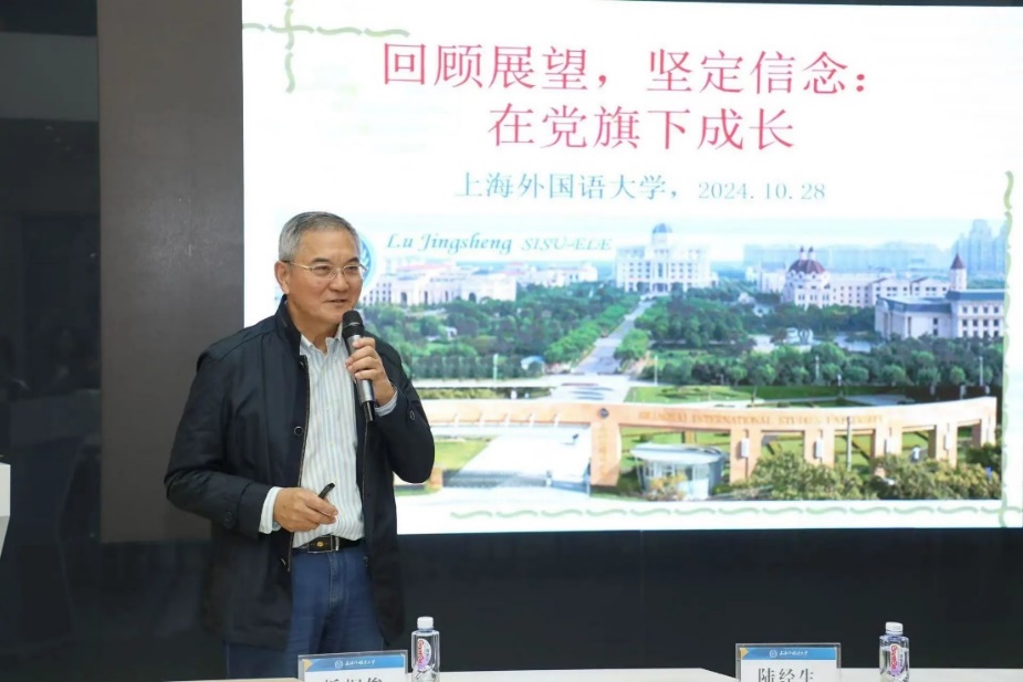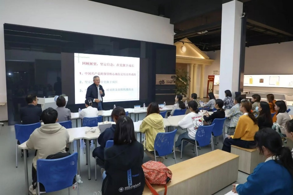 上海外国语大学教授、博士生导师陆经生老师受邀为此次入党积极分子培训班带来专题讲座“回顾展望、坚定信念:在党旗下成长”。