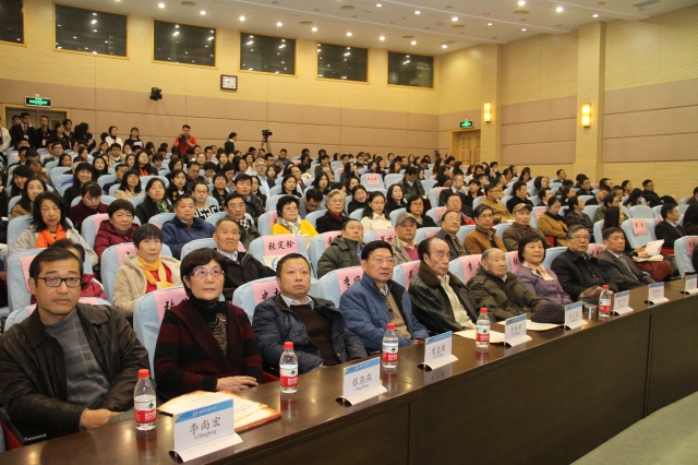 上海外国语大学前党委书记、校长,英语系前系主任戴炜栋教授则代表学院老领导、老教师发表讲话,他深情回顾了学院创办初期的艰辛历程,并对如今学院取得的可喜成果表示赞赏。大会上,英语学院青年教师们向到会的退休教师们献上鲜花,表达了对前辈的敬意与感谢。