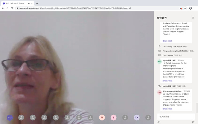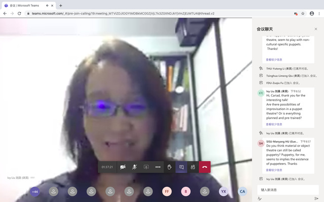 8月25日的交流内容以跨文化沟通为主题,以戏剧为核心,埃克塞特大学戏剧专业的卡里亚德·阿瑟尔斯(Cariad Astles),简·米林(Jane Milling)以及清华大学的刘昊老师分别针对中西方偶戏剧场的传统与创新、沉浸式戏剧在中英两国的实践情况以及莎士比亚戏剧在中文语境中的改编进行演讲,对中西方戏剧的沟通方式、内容与目的进行了简单对比。我院同学对于沉浸式戏剧进行了提问,在关于沉浸式戏剧的排练周期以及其在中国本土的融合问题上和老师们进行了讨论。