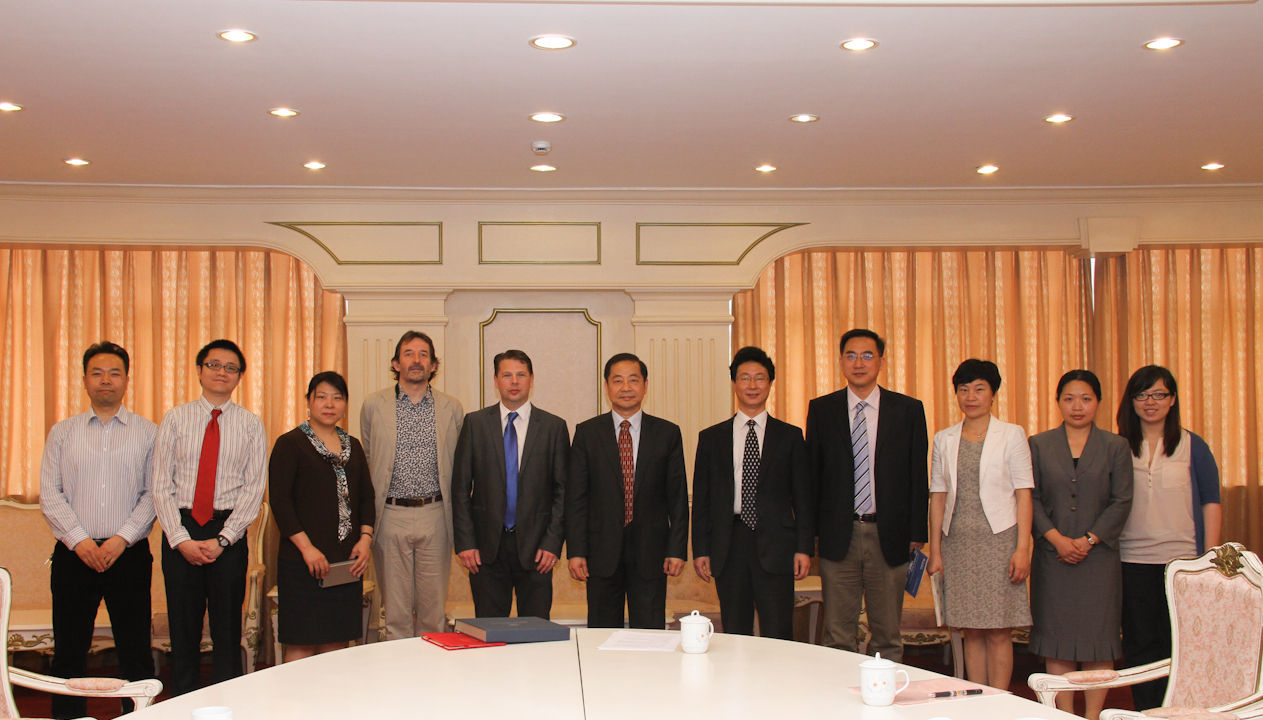 2013年5月13日,英国莱斯特大学英语学院院长Martin Halliwell教授率团访问我校。代表团成员还包括莱斯特大学英语学院学术部主任Mark Rawlinson博士、翻译与口译研究中心主任Claire Yi-Yi Shih博士和法律系教师Horace Yeung博士。