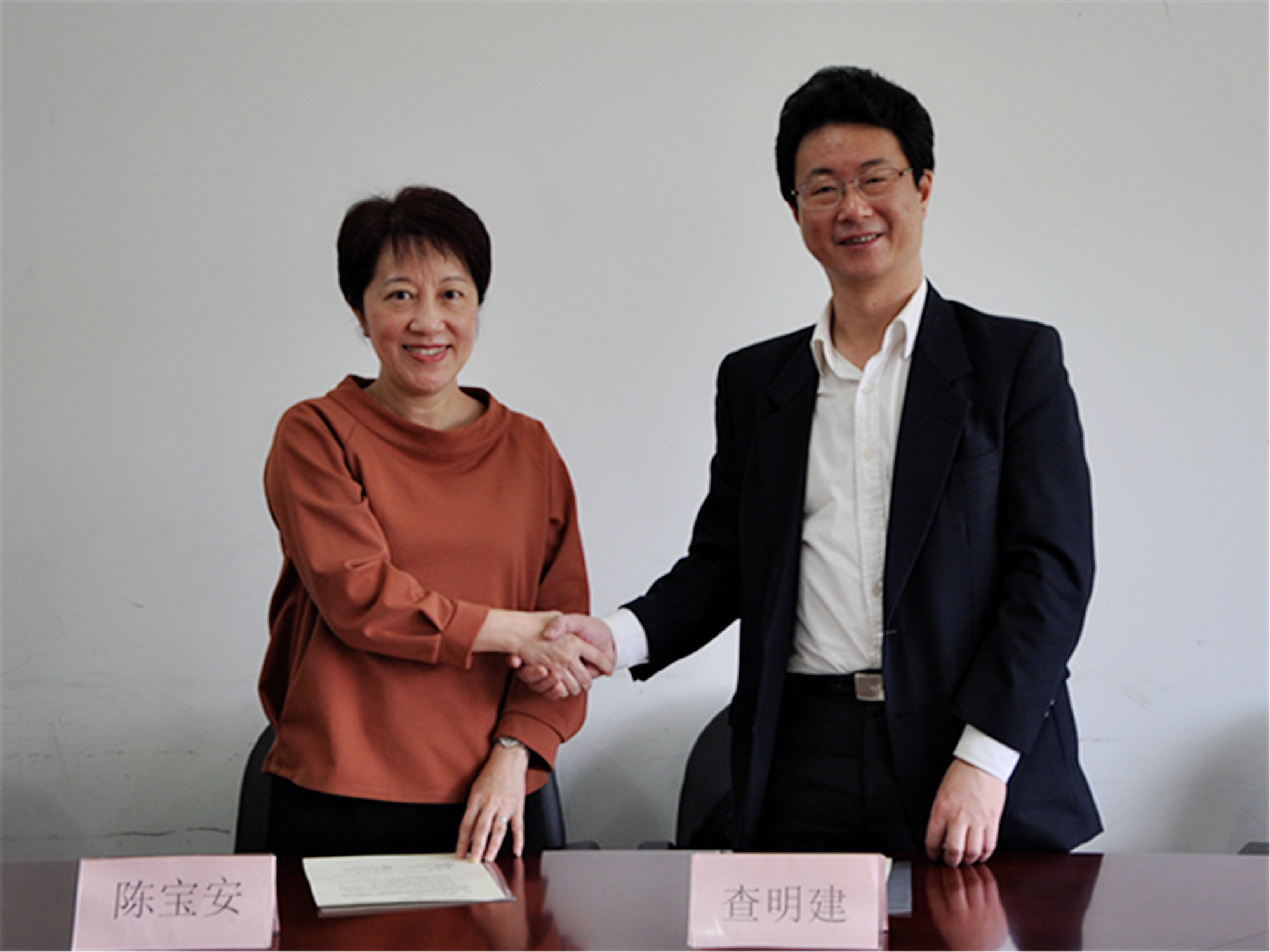 5月8日上午,香港中文大学专业进修学院院长陈宝安博士一行来访上海外国语大学英语学院,与我院就学生交流事宜进行洽谈。会后,双方院长签署了两院合作备忘录。