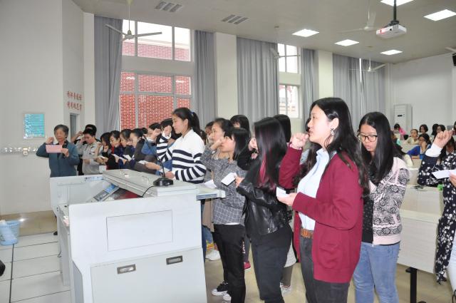首先,徐文文老师带领12、13级的29名预备党员在党旗下庄严宣誓。坚定的目光,洪亮的誓词,无一不展现出同学们对党的热爱和对成为一名中国共产党员的无限向往。