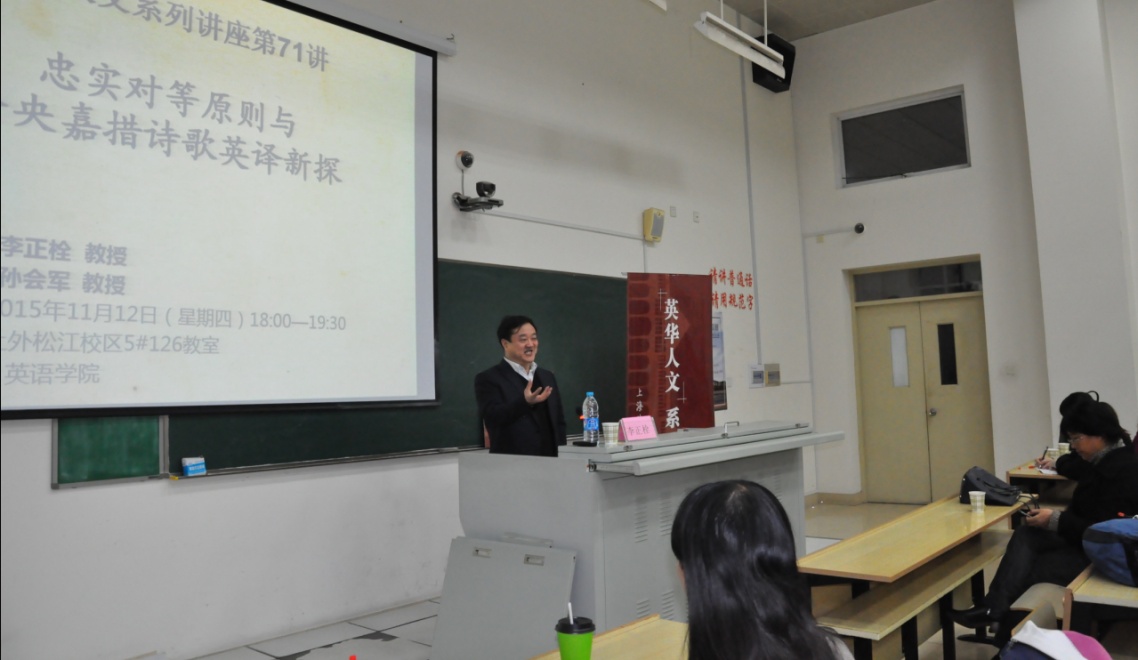 11月12日,深秋的夜晚伴随着绵绵细雨,河北师范大学李正栓教授应邀作客英语学院“英华人文系列讲座”,为英华学子带来一场题为“忠实对等原则与仓央嘉措诗歌英译新探” 的精彩讲座,该讲座为英华人文系列讲座第七十一讲,由孙会军教授主持。