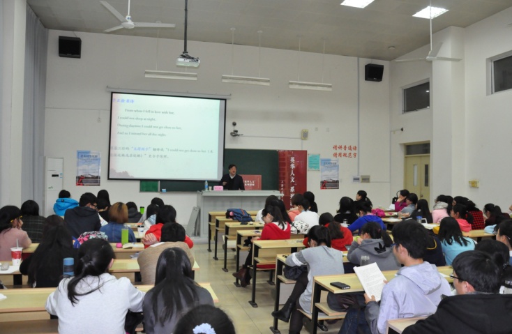 李教授在讲座中提到:“翻译是要忠实而美丽的。”他认为,在英汉互译的过程中应力求忠实对等,若是不忠实的翻译,就剥夺了两种文化和语言的对等,出现了不平等的现象。通过列举仓央嘉措诗歌中的诸多例子,李教授从理解、文化、用韵和风格四个方面阐释了翻译对等的原则,认为要翻译高质量的译文,正确理解原文是第一要务,即首先做到理解上的忠实对等。其次,在翻译过程中,彼此两种文化是对等、无优劣之分,即遵循文化上的忠实对等。此外还要力求诗歌用韵对等和风格一致,对此李教授强调:“翻译诗要用韵,是理所当然的。只要原诗用了韵,译诗的人没有权利剥夺原诗原有的音韵安排。”至于风格上的对等,李教授也指出风格是诗歌的独特个性,若没有风格,艺术作品便无特色可言。最后,李教授总结道,以忠实对等的原则来翻译仓央嘉措的诗集,既要让英语读者感受到仓央嘉措诗歌的魅力,同时要保留藏族文化,再现异域风格,使少数民族文学到世界文学的多维翻译空间得以拓展。讲到精彩的部分,李教授边讲边用肢体语言表述,还用家乡话来增添讲座的趣味性,引发全场阵阵掌声。